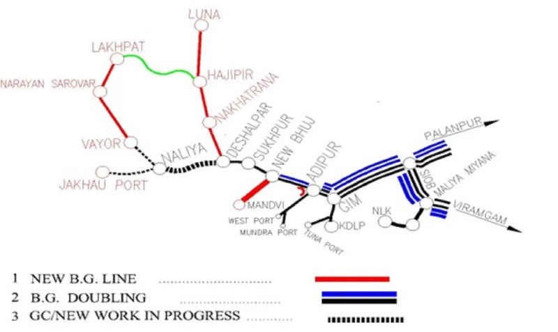 देशलपर-हाजीपीर-लूना (81.771 किमी) एवं वायोर-लखपत (62.686 किमी) नई ब्रॉडगेज रेल लाइन परियोजना की लंबाई लगभग 145 किमी होगी। इसे 2526.47 करोड़ रुपए की लागत से स्वीकृत किया गया है। इसके अंतर्गत 15 स्टेशन, 91 रोड अंडर ब्रिज, 39 बड़े पुल, 74 छोटे पुल और 690 हेक्टेयर भूमि का अधिग्रहण प्रस्तावित है। इस परियोजना में 2 गुणा 25 केवी एसी विद्युत प्रणाली का उपयोग किया जाएगा।