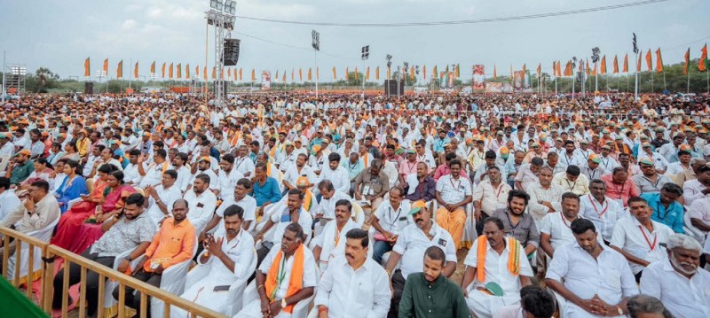 तमिलनाडु भाजपा अध्यक्ष नैनार नागेंद्रन, पूर्व अध्यक्ष के. अन्नामलै, भाजपा महिला मोर्चा की राष्ट्रीय अध्यक्ष वानती श्रीनिवासन, पूर्व गवर्नर डा. तमिलइसै सौंदरराजन, शरथ कुमार समेत अन्य वरिष्ठ पदाधिकारी इस रैली में मौजूद थे।