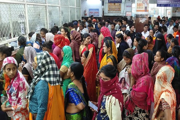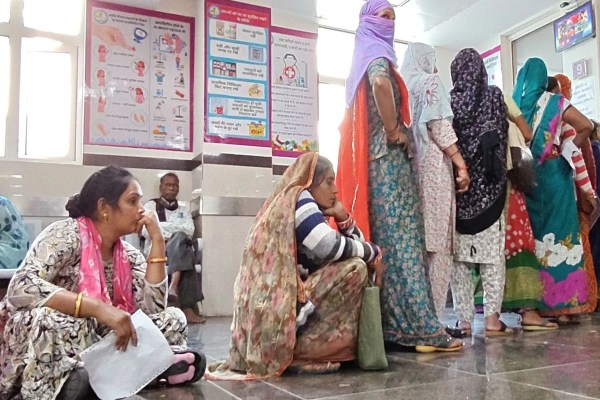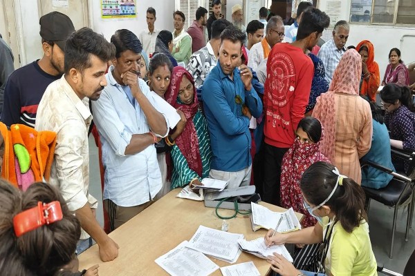 अस्पताल के पर्ची काउन्टर पर लगी कतारें।