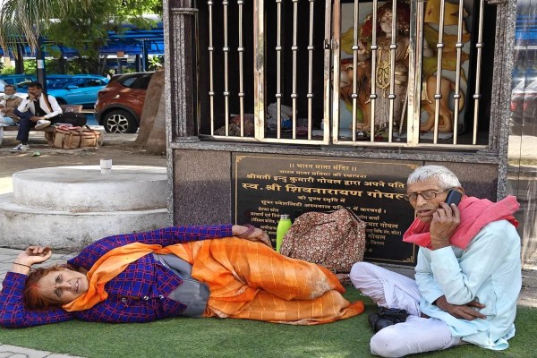 आउटडोर में भीड के चलते मरीज दम्पति ने लिया मंदिर का सहारा।